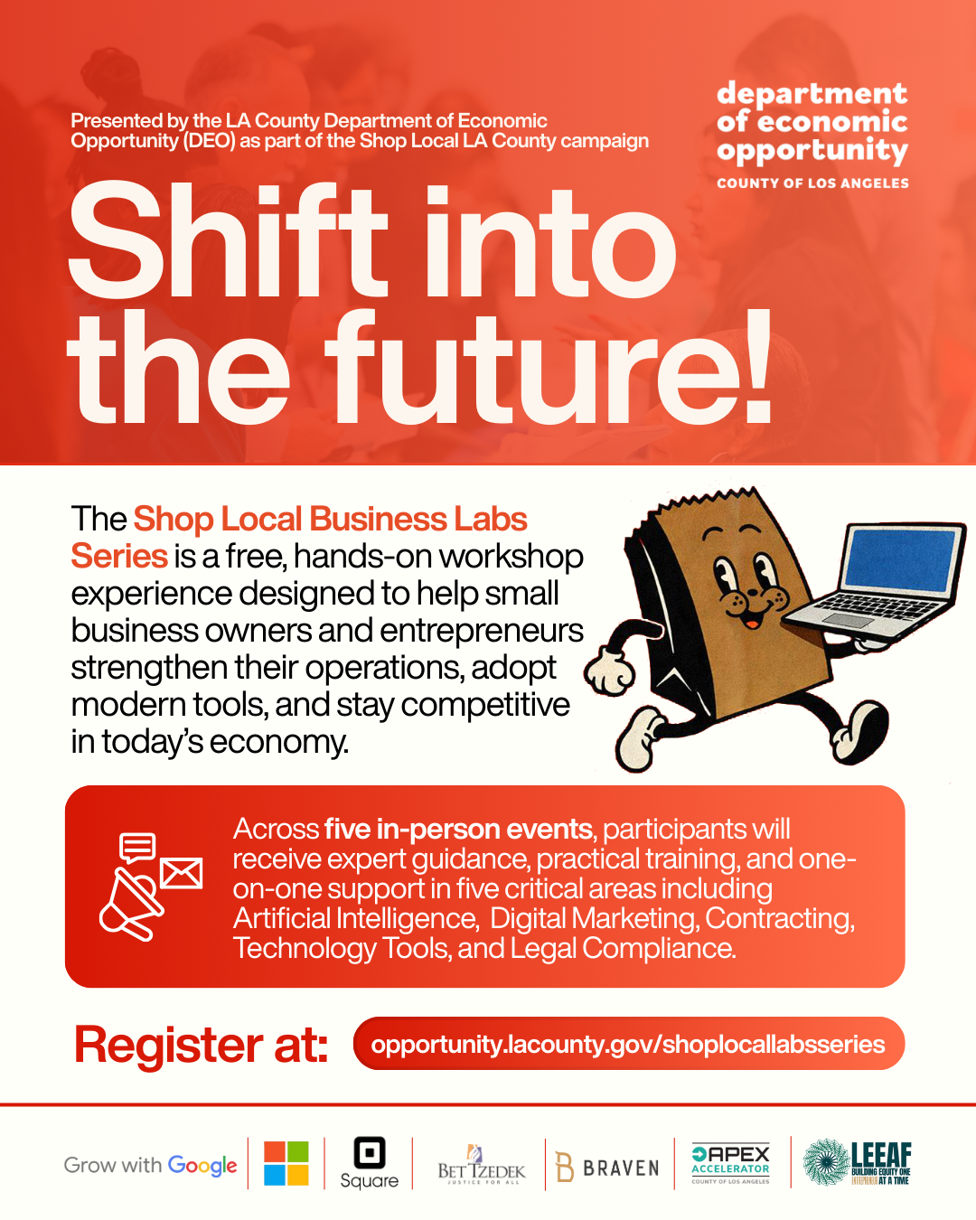 DEO’s Shop Local Business Lab Series is an interactive experience where small business owners and entrepreneurs can engage in workshops led by subject matter experts to develop strategies and skills that advance their growth and competitiveness. Whether you’re just starting your digital journey or ready to automate and scale, this lab will equip you with the tools and network needed to innovate with confidence.