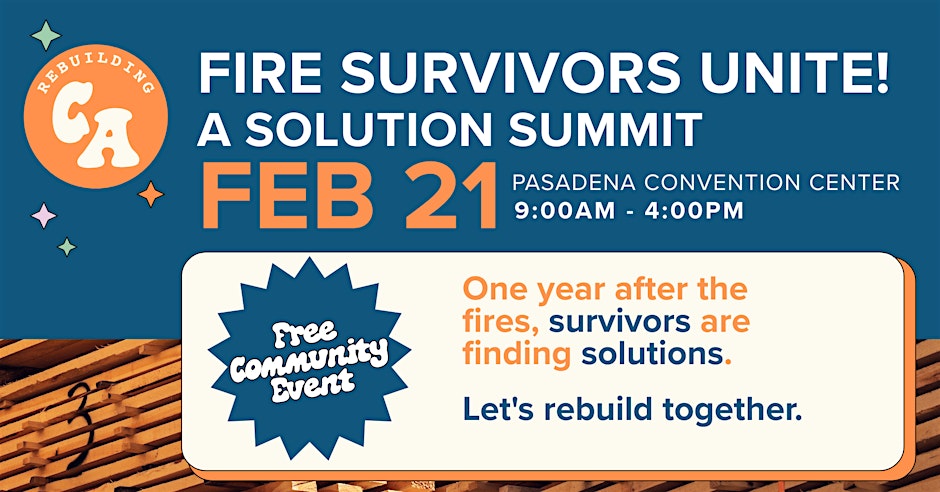 At the Pasadena Convention Center, residents, neighbors, local leaders, builders, nonprofits, and recovery partners will gather for a community-centered day focused on healing, learning, and rebuilding.